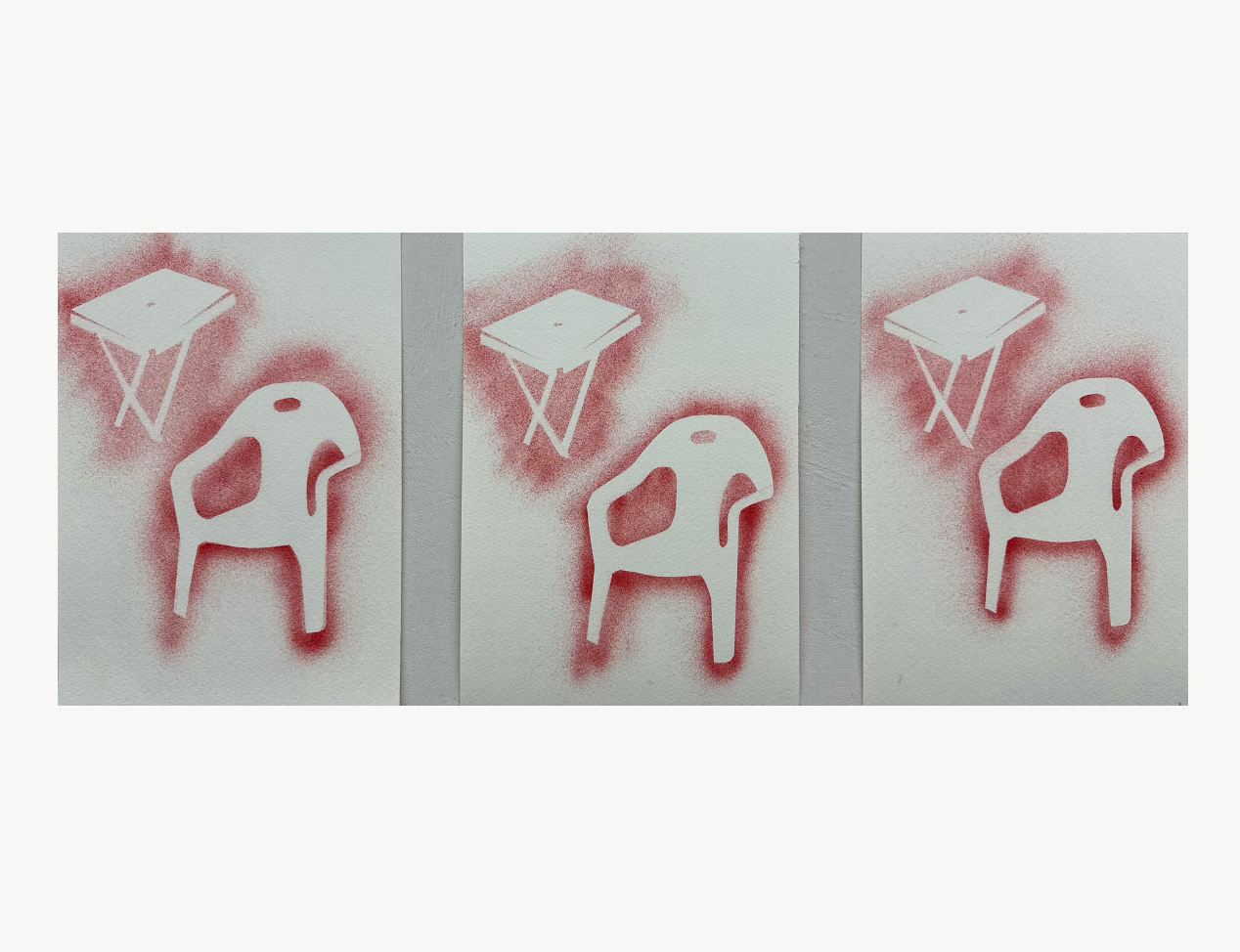 Chair, 2025, Airbrushed on paper, 3 parts, Each 22 x 16 cm